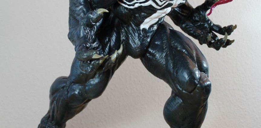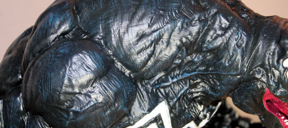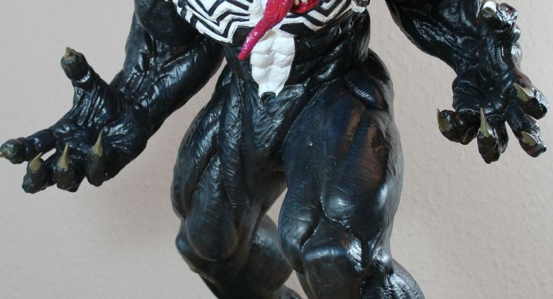 I have painted Venom with Tamiya paints (spray cans mostly) and Vallejo acrylics for the mouth (teeth, tongue). I used Nato Black as base color for the skin and sprayed some blue shades here and there and as a last step I did a blue dry brushing to highllight some areas.