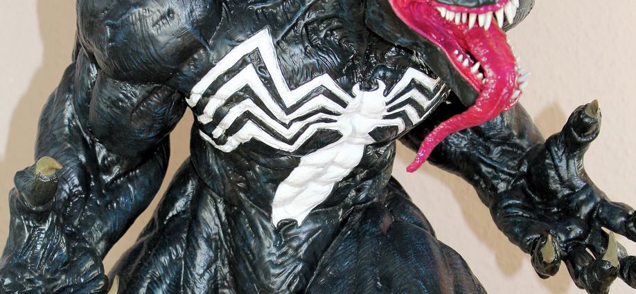 Here is a build for a client of the custom Venom, a resin kit offered by Spawning Pool Studios. This Venom kit was limited to 40 and is 1/3rd scale which is really huge and heavy. The biggest challenge while puting this together was to work with a statue of this size and mass. The parts did fit very well together, some bondo work was required here and there I used aves sculpt for the most part. The head came into three pieces which made the painting of the mouth area easier. In the picture above is a size comparison with the 1/4 scale Wolverine from Sideshow Collectibles.